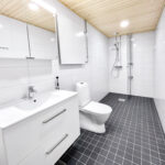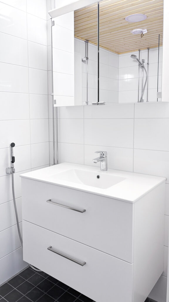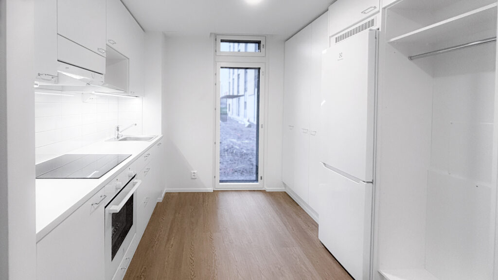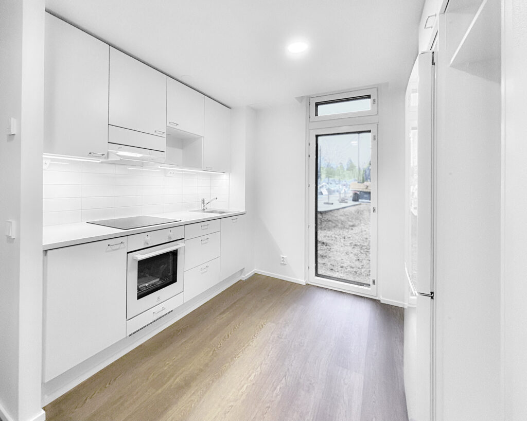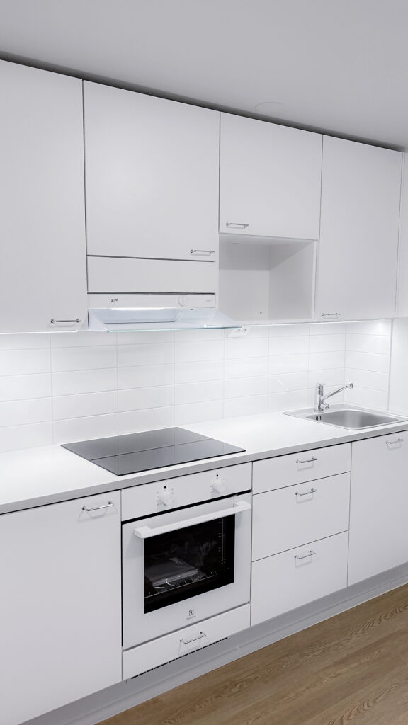 Laatoitetuissa kylpyhuoneissa on varaus pesukoneelle. Keittiöissä on Electroluxin jääkaappipakastin, kalusteuuni ja induktioliesitaso. Asuntojen lattiamateriaali on vinyylilankkua. Rakennuksen julkisivut ovat kadulle päin muurattua tiiltä ja sisäpihalla pystysuuntaista kuusta. Hissillisessä rakennuksessa on tilava ja valoisa porrashuone.